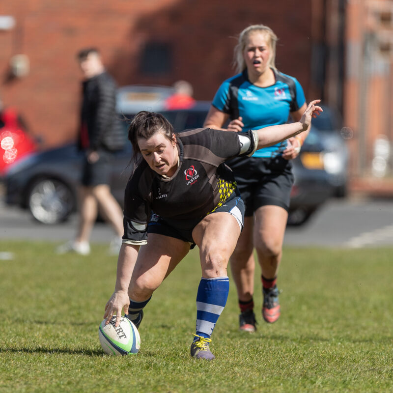 The Blues worked their way back into the game, when Eimear Campbell burrowed her way over after 30 mins. Melissa Traynor converted to leave to halftime score 10-7 to the Blacks.