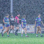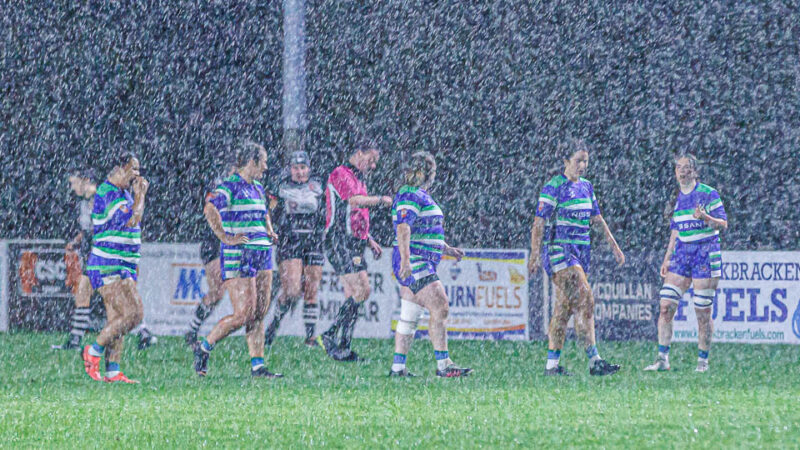 The largest downpour arrived about 25 minutes in and the game was a bit of a lottery. Suttonians made the best of the conditions and, after keeping Cooked pinned in their own half for a good fifteen minutes they finally got their reward with Emma Jordan going over for a try just before the break. Órfhlaith Murray added the conversion to take the score to 7 – 7 at half time.