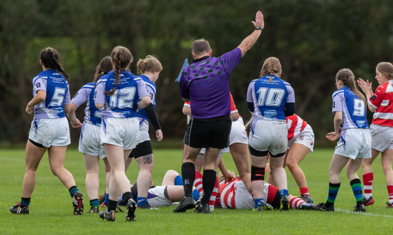Queens held their own in initial skirmishes but gradually the power of the Randalstown pack began to tell. After a series of drives, Laura Bishop forced her way over for an unconverted try and a 5-0 lead, after 13 minutes.