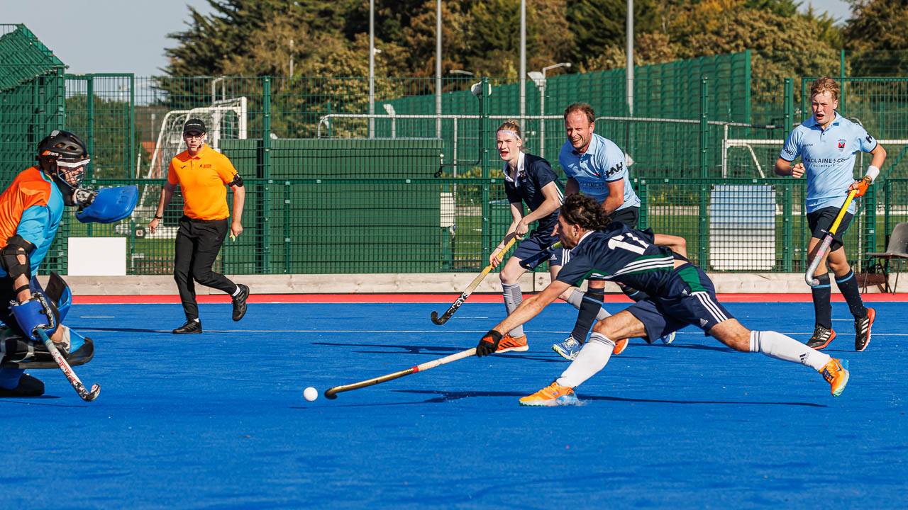 The pass back was delayed by five minutes due to an overrun with the previous game but it didn’t take the teams long to get into their stride with Queen’s Matthew Vincent netting within a minute of the pass back.
