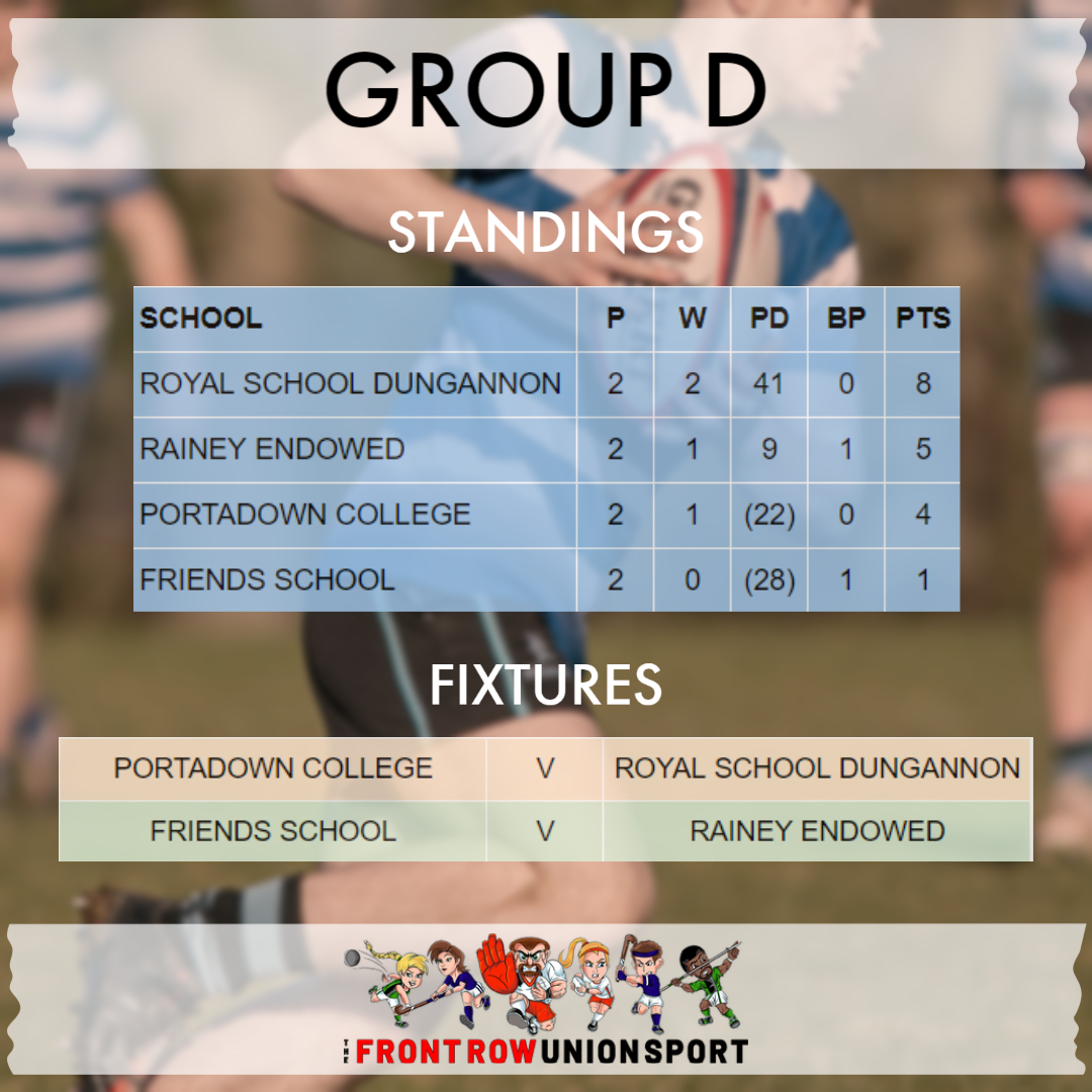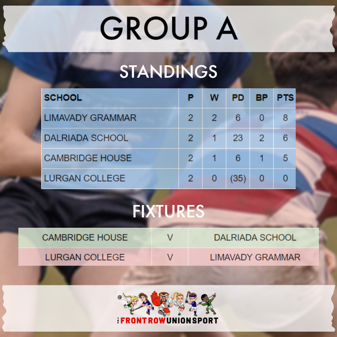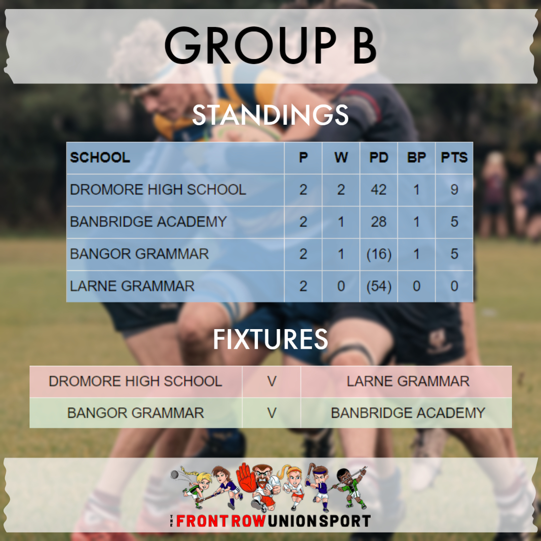 The 5 group winners, and the best-placed runner-up, will qualify for the knockout stages of the Danske Bank Schools’ Cup, and the Subsidiary Shield.