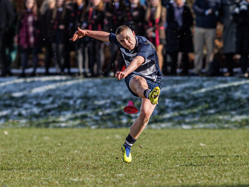 Methody’s Peter Molloy sends a penalty on it’s way.