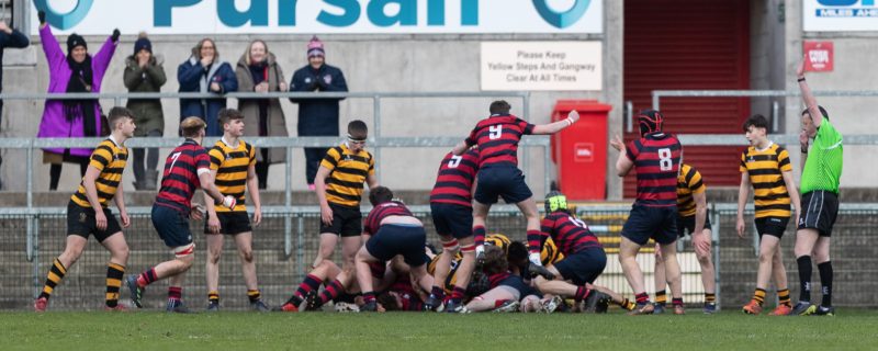 They rocked Inst back in the opening minutes, through a series of forward drives. A gap opened and Joshua Patterson drove over for the opening try. Ben Collins converted for Ballymena to lead 7-0 after 4 minutes.