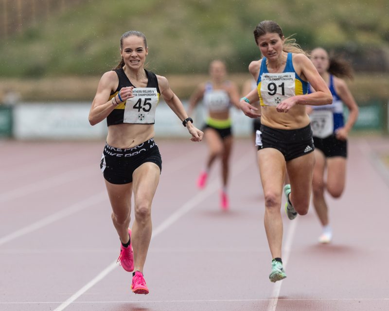Rebekah Osborne (Dromore) won the Senior Women’s 1500m, from Rachael Gibson (North Down) in a PB of 4.26.76