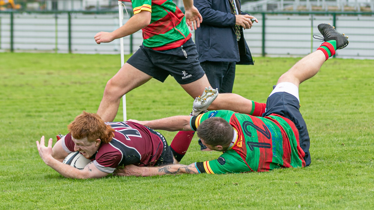 This game was a much stiffer challenge for the home team as Donaghadee put up strong resistance in the opening quarter. However, a break out by Academy led to an Aaron Heatley try in the corner, converted by Michael Wilson to give Academy a 7 – 0 lead.