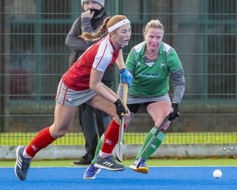 Before I could set up, the home team opened the scoring with a fine shot from No 9, Molly Young from the edge of the circle. Pegs were constantly pressing but couldn’t extend the score before half time.