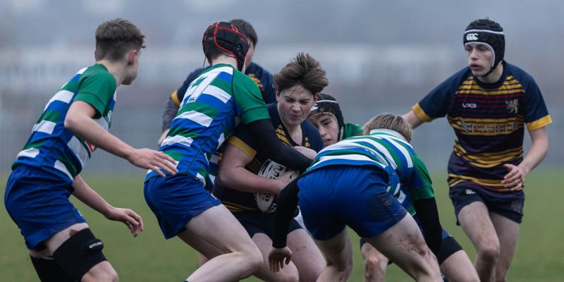It was grey, overcast, and misty for the 10.00am kick in east Belfast of the Medallion Shield match between Grosvenor Grammar School and Bangor Academy.