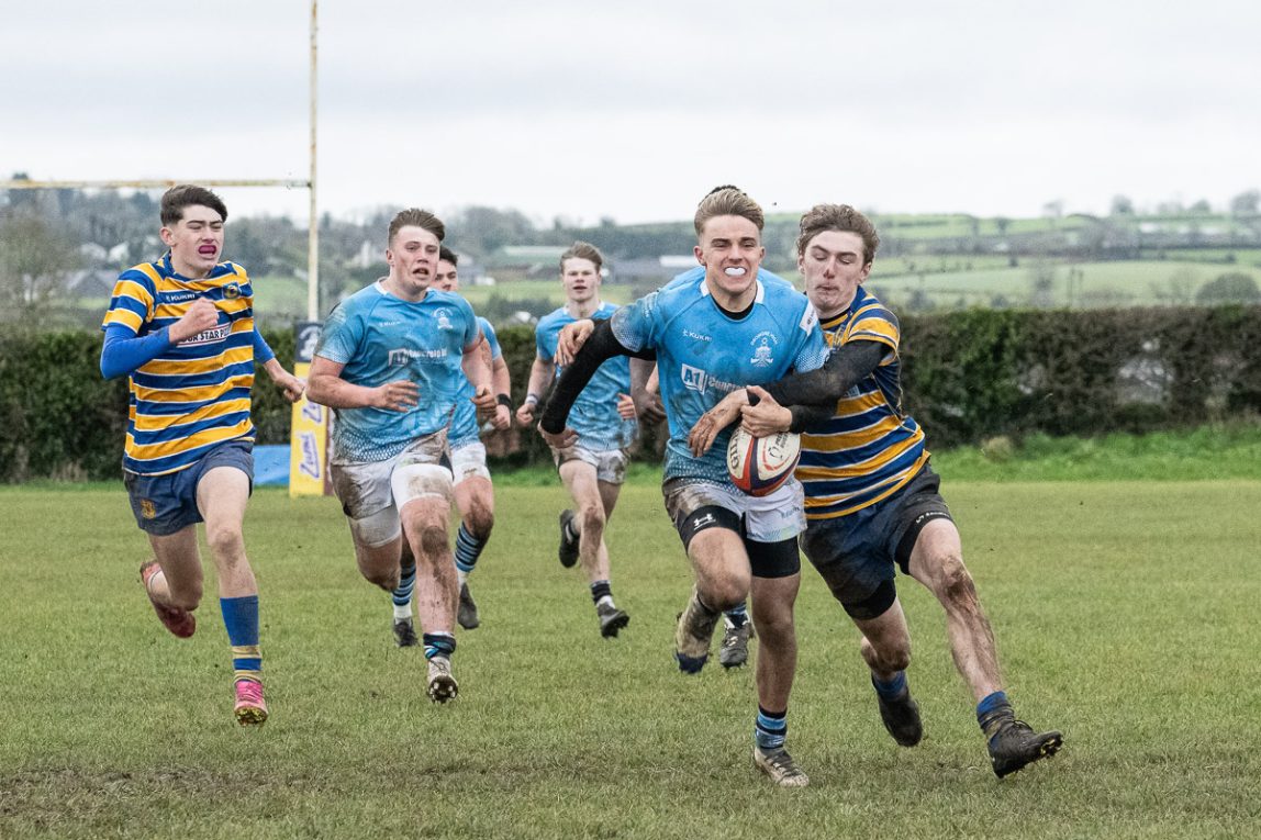 A strong home team took full advantage of the gale force winds in a first half full of Dromore tries. From a charge down on the visitors goal line, No 7, Matthew Heasley dropped on the ball to open the scoring. Daniel Ennis-McManus stepped up to score the conversion to take it to 7 – 0.