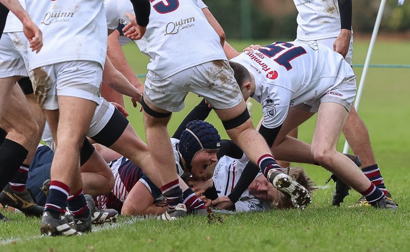 Utilising the slope and wind to contain Armagh in their 22, Wallace were soon off the mark as they the powerful pack hammered at the Armagh line with flanker Ben Moore eventually breaking through after 7 minutes, to touch down for his sides opening try which Lewis Stevenson neatly converted for a 7 – 0 lead.