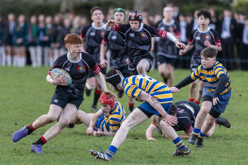 Playing with a stiff breeze Banbridge pressed with forward interplay. They became more ambitious throwing the ball wide. A loose pass was intercepted in the 22. Tom Huey showed a clean pair of heels to the Banbridge defence, before dotting down under the posts. Matthew McCabe’s conversion put High School 0-7 up in 9 minutes.