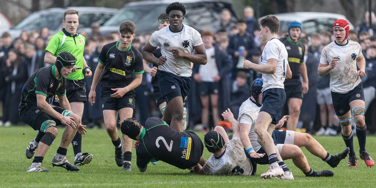 On Saturday morning Sullivan Upper School were the visitors to one of Ulster school’s rugby most formidable citadels, ‘The Enclosure’ at Pirrie Park to face Methodist College in a quarter final Schools Cup tie. The sun had burnt off the early morning fog, though there was some blue haze from smoke bombs. A very large, vociferous, partisan crowd lined the pitch.