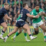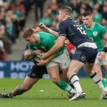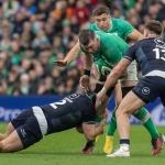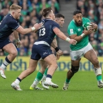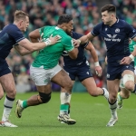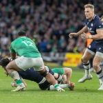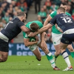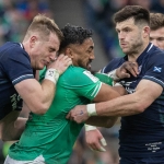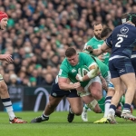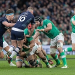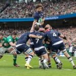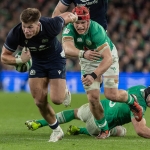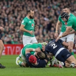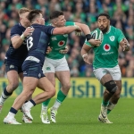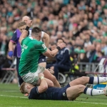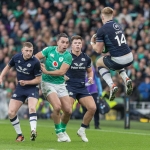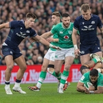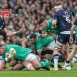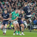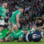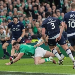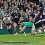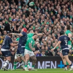 Ireland came back after Scotland had read a lineout move, which sent the Irish maul into touch. From their lineout they overthrew the ball, which was snapped up by Dan Sheehan who ran in unopposed from 5 metres. Jack Crowley‘s conversion gave Ireland a 7 – 3 lead after 13 minutes.