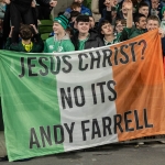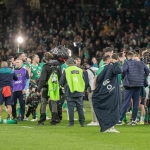 Ireland held out for a nervy few minutes, while the crowd were in full voice with ‘The Fields of Athenry’, before the full time whistle blew.