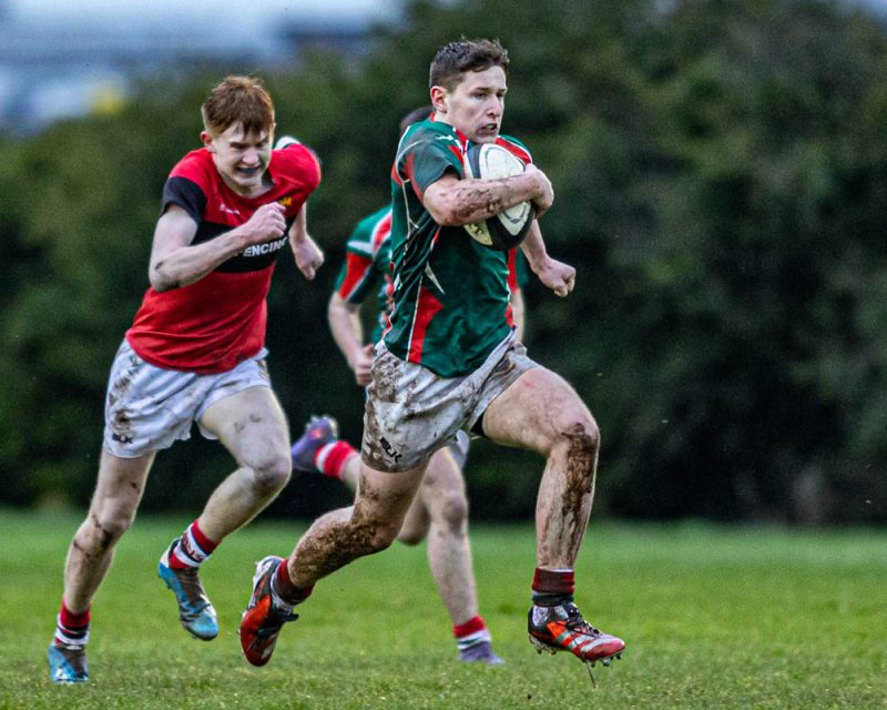 Action from the Club-School friendly match between Larne and Carrick on Wednesday 4 April 2024. Photo: John McMurtry. © FRU SPORTS 2024.