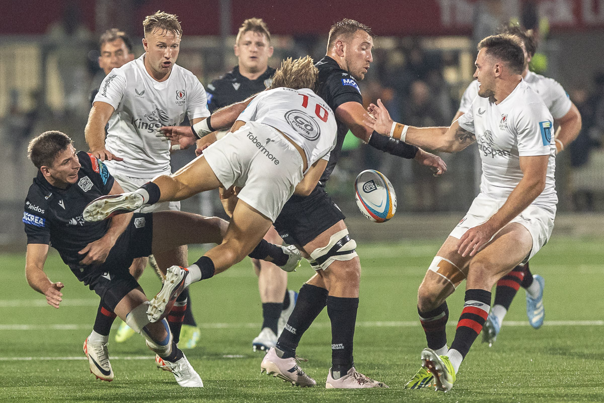 Minutes later Aidan Morgan charged down Tom Jordan’s clearance kick, hacking it downfield, before regathering and offloading. From the subsequent ruck Morgan found a gap to score, beside the posts. Doak’s conversion gave Ulster a 10-3 lead on 19 minutes.