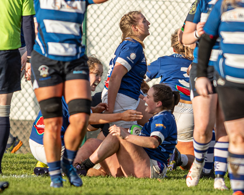 With a strong wind behind them Queen’s took control of the game early on with a try after three minutes from Ciara Fitzsimons.