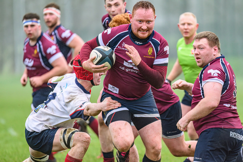 Academy got off to a great start with scrum half, Conor Spence bursting through to put the first points on the scoresheet with No 10, Michael Wilson adding the conversion to take the score to 7 – 0.