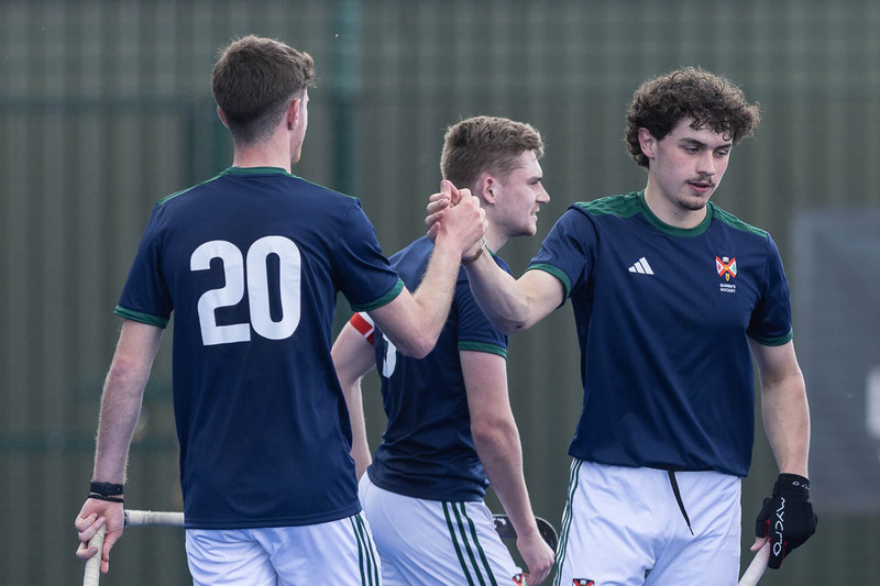 Queens took the game to South Antrim, opening the scoring, after 3 minutes, when Harry Scott found space in the circle to fire the ball under the advancing keeper for 1-0.