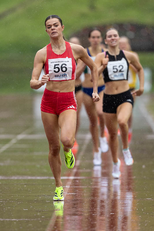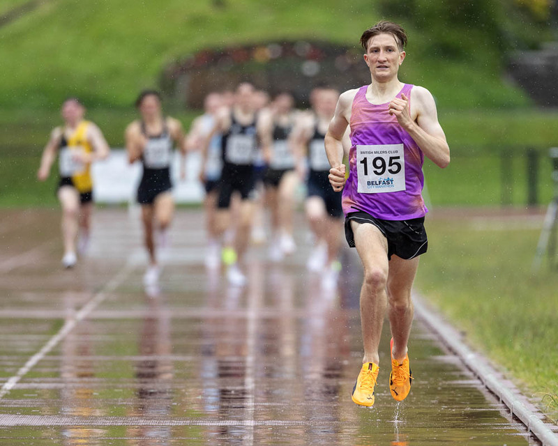 On Saturday Lagan Valley AC promoted a British Milers Club Meeting at the Mary Peters Track. Conditions were challenging for both athletes and photographers! Heavy rain alternated with light rain for the duration of the meeting.