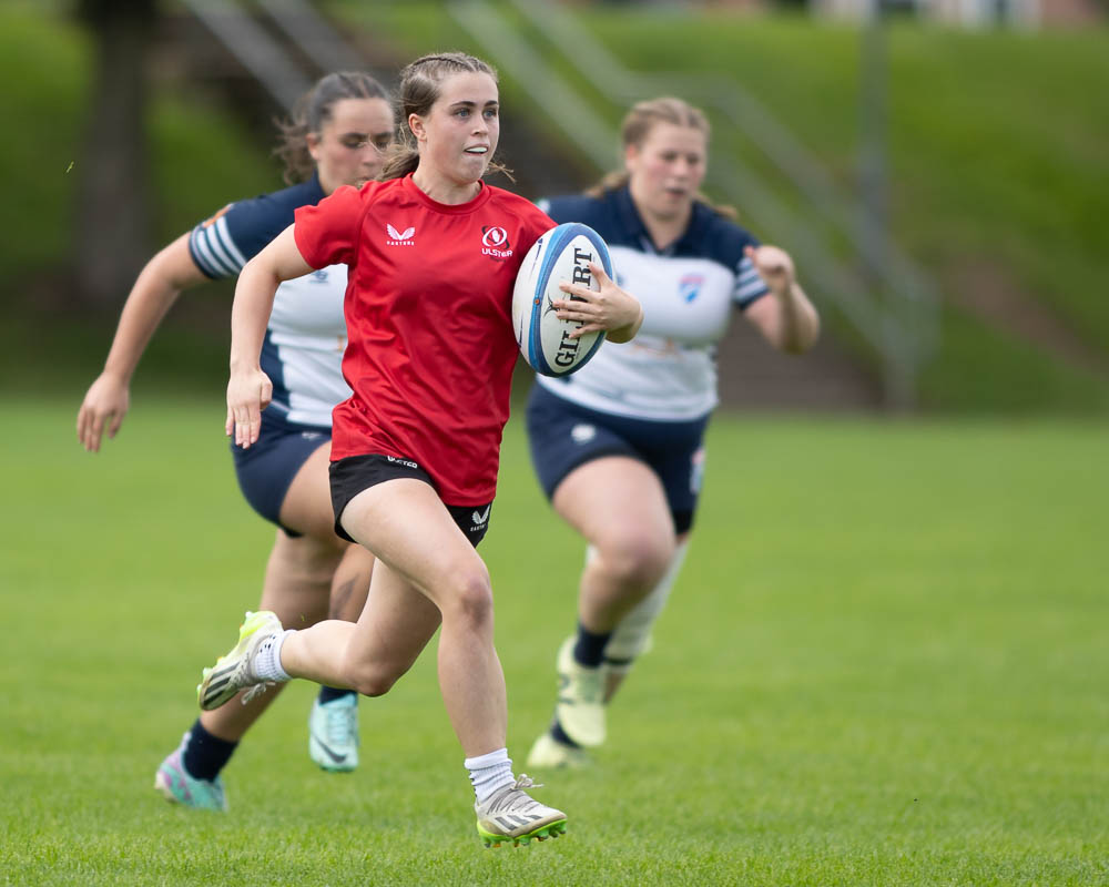 The Ulster girls got off to a flier in this one as Aoibhin Smith ran half the length of the pitch from a scrum on the half way line after the kick off went directly into touch. Ulster led 5 – 0 with a minute played.