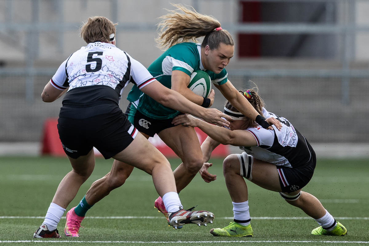 The rest of the half was Canada’s. Tries from Florence Symonds, 25 minutes, DaLeaka Menin, 33 minutes, and Paige Farries, 40 minutes, together with a pair of Sophie De Groede conversions gave Canada a commanding 33-7 halftime lead.