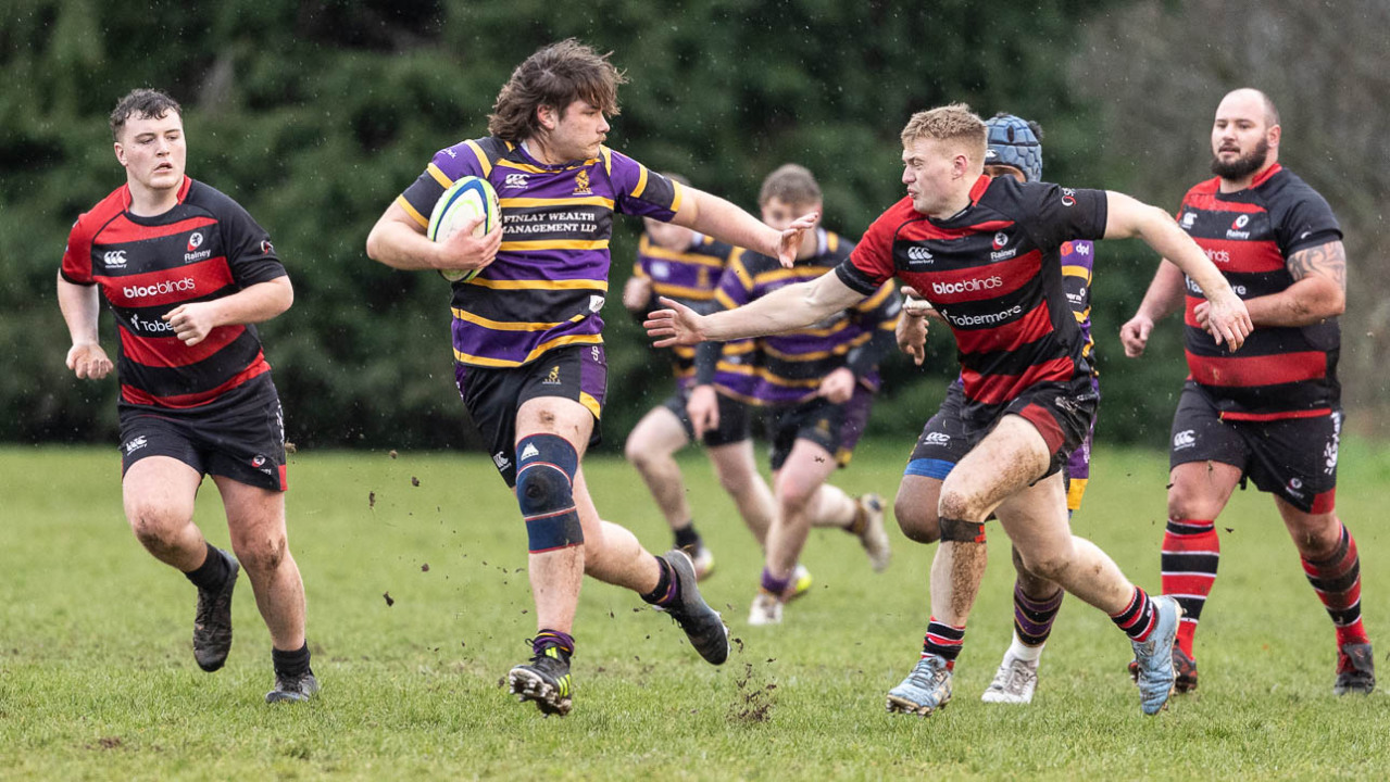 Both teams attempted to run the ball but overhead and underfoot conditions conspired against this style of rugby. Rainey took a 3-0 lead following a Ryan Kearns short range penalty goal after 7 minutes.