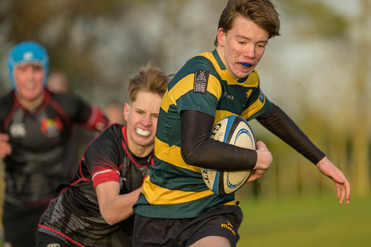 The chilly weather in Banbridge made for a fast flowing game with lots of handling errors and it was the visitors who put first points on the board when, No 13, Cameron McDowell crashed his way through in the opening 5 minutes to give the visitors a 0 – 5 lead.
