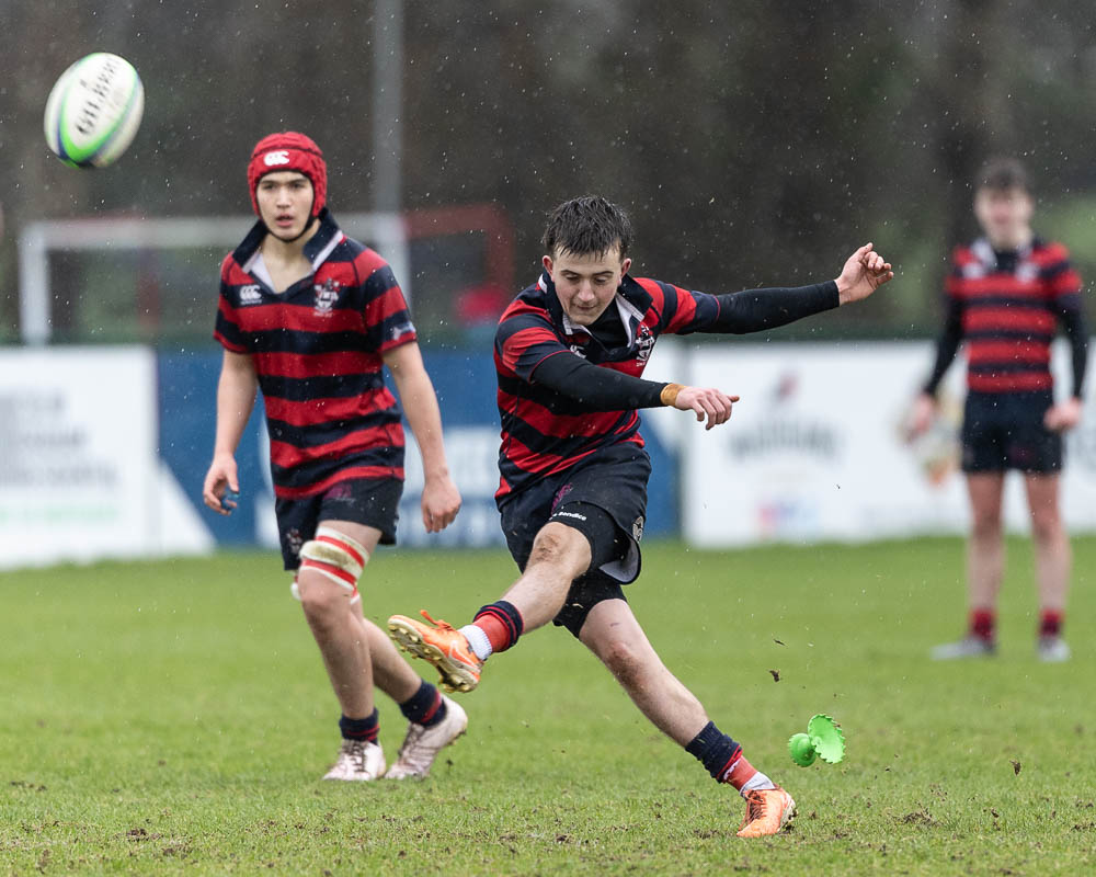 On Wednesday afternoon Ballymena Academy 2XV and Royal Belfast Academical Institution faced off in the Schools 2XV Cup in challenging conditions at Roughfort. A strong cold wind blew across the pitch. Only the intensity of the rain varied throughout the game.