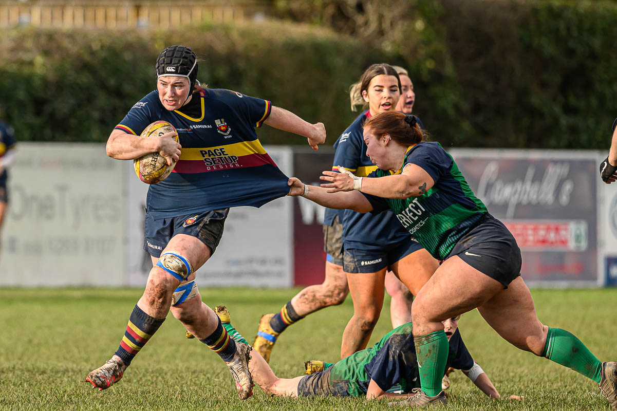 Having been slightly delayed in traffic, we missed Tori Moffett’s early try to put the home side 5-0 ahead but it wasn’t long before Eimher Toal ran in at the corner to extend Banbridge’s lead, ably assisted by Jemma Farrell’s conversion for 12-0.