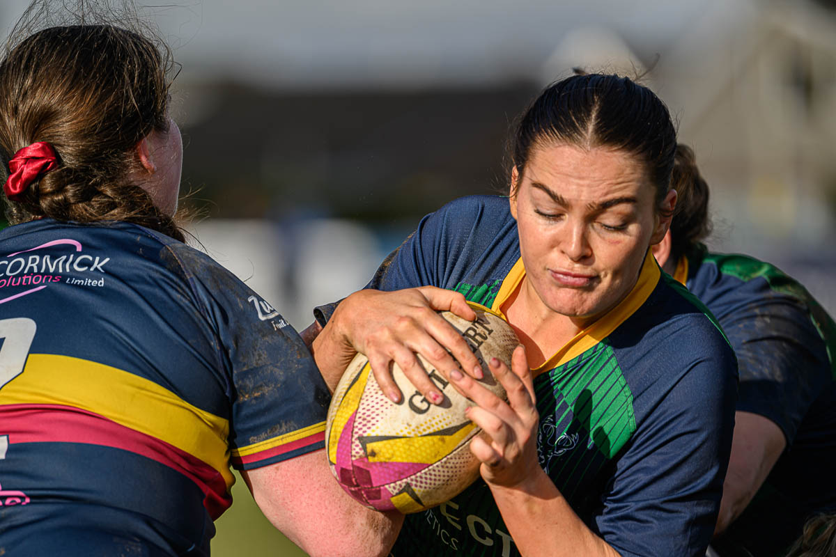 Having been slightly delayed in traffic, we missed Tori Moffett’s early try to put the home side 5-0 ahead but it wasn’t long before Eimher Toal ran in at the corner to extend Banbridge’s lead, ably assisted by Jemma Farrell’s conversion for 12-0.