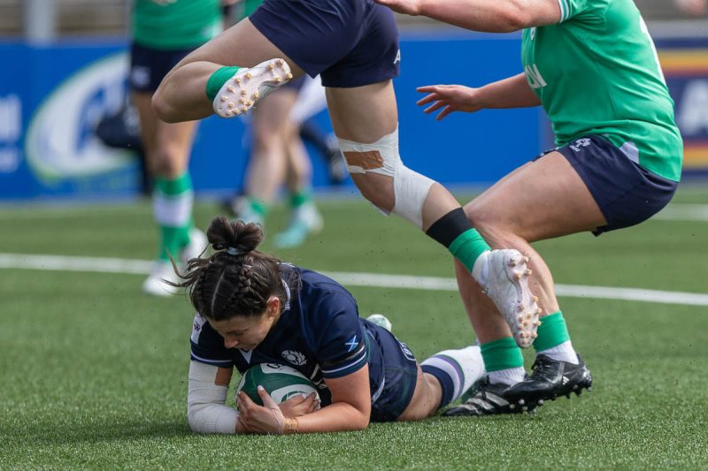 Scottish pressure led to a 50th minute try for , after she picked a great line, to score beside the posts. ‘s conversion put Scotland 12-5 up.